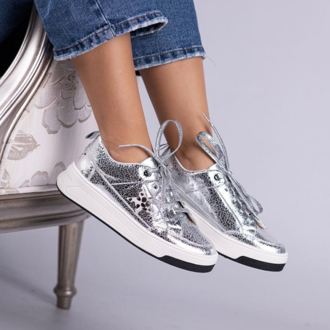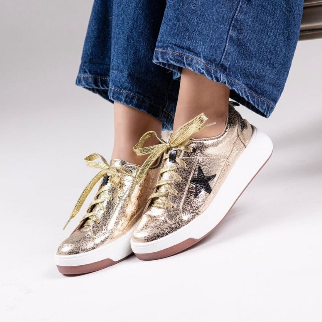 Hechos en cuero 100 % premium, los Tenis Star se distinguen por su icónica estrella metálica lateral que aporta un toque chic y distintivo a cualquier look. Su diseño combina resistencia, suavidad y confort, con una plantilla acolchada que te acompaña con ligereza en cada paso. Perfectos para quienes brillan con estilo propio.